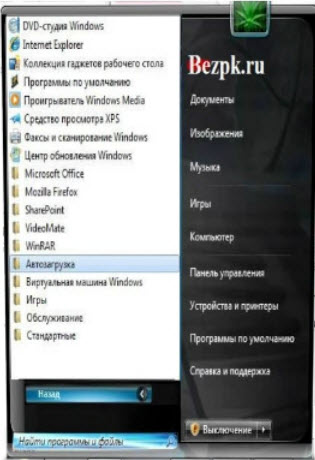 2. Второй из вариантов будет немного легче. Заходим в меню (пуск) и находим папку автозагрузка. В этой папке вы увидите ярлыки программ которые автоматически загружаются при старте windowsa. Для удаления нажимаете правую клавишу мыши и выбираете удалить. После перезагружаете компьютер и смотрите какие из программ еще запускаются, а если нужно и их удаляете из автозапуска windows 7.