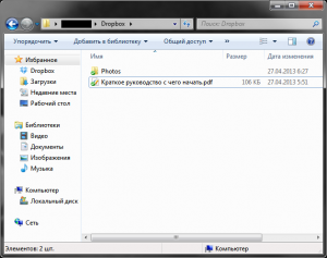 Щелкнув два раза по этому ярлыку, мы попадаем в ту самую папку, которая синхронизирована с облачным хранилищем. Теперь просто перетаскиваем в эту папку все важные файлы и можем больше не беспокоиться за их сохранность.