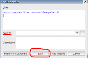 В графе Save to указываем путь для сохранения нашего файла (или нескольких файлов, поскольку Free Rapid Downloader поддерживает мультизагрузку) и нажимаем кнопку Start. Рядом возле нее имеется также кнопка Add paused – это на тот случай если вы хотите только добавить файл в список загрузок, но запустить его позднее. Все, теперь осталось только дождаться конца загрузки.