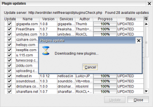 Качать с файлообменников без ожидания и рекламы нам поможет небольшая программка – Free Rapid Downloader. Утилита эта полностью бесплатная, весит она по минимуму и не требует установки, правда в ней есть и маленький минус – отсутствие русского языка. Серьезным недостатком это не является, поскольку интерфейс данной программы чрезвычайно простой и запутаться в ней может только тот, кто проспал в школе даже начальные уроки по английскому. В общем, качаем эту самую программку, лучше всего с сайта разработчиков (wordrider.net/freerapid/download.html). Открываем программу, в окошке, которое просит нас пожертвовать материальные средства на развитие проекта, нажимаем No (а впрочем, смотрите сами), затем должен запуститься поиск новых обновлений и плагинов для программы. В случае если таковые обнаружатся, перед нами появится вот такое окошко: