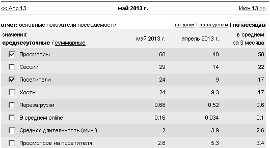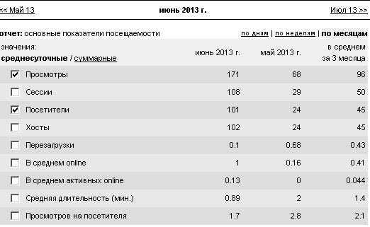 А теперь давайте посмотрим как все начиналось. В первом месяце у меня уже был небольшой трафик из поисковых систем. Как сейчас помню, что на то время было написано 5 статей. Смотрим отчет посещаемости по месяцам.