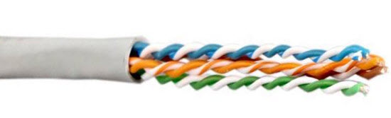 3. Ну и конечно же кабель, как его еще называют витая пара. Который я не буду говорить куда подключается) Для соединения компьютера и ноутбука он тоже применяется, только в каждом устройстве должна стоять сетевая карта. Кабели витой пары бывают разного вида, например для выдерживания минусовых температур есть специальная изоляция. Такой кабель будет стоить немного дороже, а выглядит кабель витой пары вот так