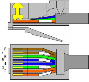 Если вы решили подключать свой компьютер к WiFi роутеру или свитчу, то следует обжимать кабель с обеих сторон одинаково. Ну а если вы хотите обойтись без роутера то вам нужно будет обжать кабель методом (кросс), или как ее еще называют (кроссовер). Смотрите схему на картинке