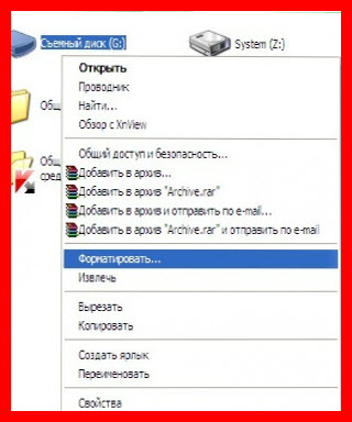1. При подключении флешки ждем пока ее определит компьютер и после заходим в мой компьютер, нажимаем на ярлык флешки правой кнопкой мыши и в контекстном меню выбираем форматировать.