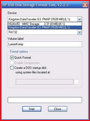 В этом варианте форматирования флешки мы будем использовать программу HP USB Disk Storage Format Tool. Довольно шустрая программка которая не требует никаких доп. установок. С помощью ее можно отформатировать флешку в такие форматы (NTFS, FAT, FAT32)