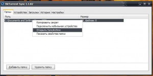 При удалении файлов с папки для синхронизации на одном компьютере, на других синхронизированных компьютерах этот файл не удаляется полностью, а помещается в скрытую папку «SyncArchive», которая находится в папке «BTSync» или другой, созданной вами позднее. Если вы хотите извлечь файл обратно с этой папки или же удалить его окончательно, необходимо в окне программы, во вкладке Папки нажать на той папке, с которой был удален файл, правой кнопкой мышки и выбрать в контекстном меню пункт Открыть SyncArchive. После этого откроется папка, где хранятся удаленные файлы.