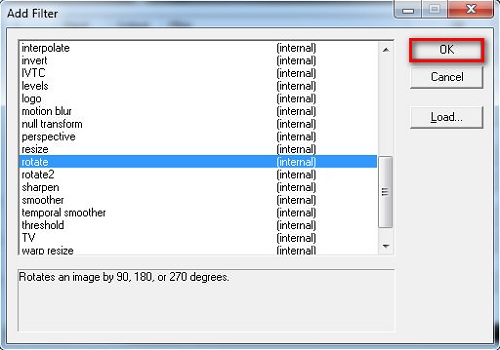 А в следующем окошке выбираете фильтр rotate и нажимаете ОК: