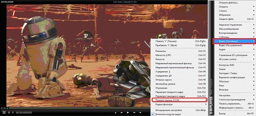 Для этого,переворачиваем видео против часовой стрелки или по часовой, мы можем использовать популярный плеер KMPlayer.