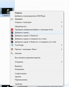 Первый способ подразумевает участие всем нам знакомого архиватора Winrar. Итак, нажимаем правой кнопкой мышки по нашему файлу и выбираем из контекстного меню пункт Добавить в архив.