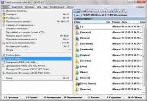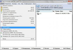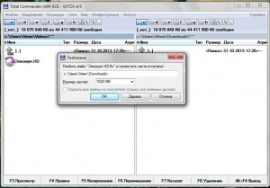 Также можно разделить файлы при помощи файлового менеджера Total Commander. Выделяем файл, который нужно поделить, и идем в меню Файлы>Разбить файл.
