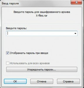 Теперь при попытке открыть архив или извлечь файлы программа Winrar будет требовать ввод пароля.