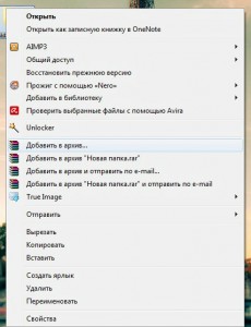 Итак, нажимаем по нужной папке правой кнопкой мышки и выбираем из контекстного меню пункт Добавить в архив.