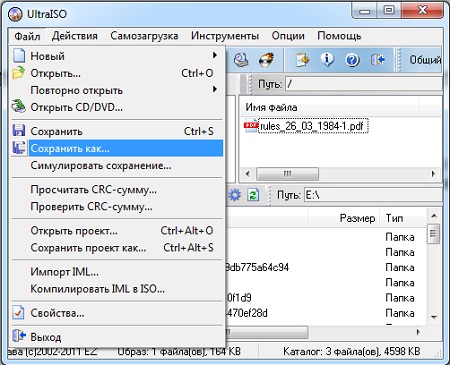 Итак, когда вы открыли Ultra ISO, выберите меню «Файл» → «Новый», а в нем нажмите «Образ CD/DVD с данными». Если вам будет нужен файл, который при включении компьютера сам загружаться, как диск, тогда выберите в том же меню «Самозагружаемый образ CD/DVD».