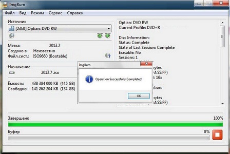 По окончании процесса создания образа вы увидите перед собой соответствующее сообщение: