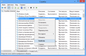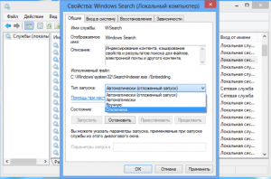 Служба индексирования в Windows 8 порой может оказаться очень полезной, так как она отслеживает местонахождение и изменения всех файлов на компьютере. Это помогает быстро найти нужный файл, введя в строку поиска его название. Однако индексация также создает некоторую нагрузку на процессор. В случае если вы не пользуетесь поиском Windows или для вас критична каждая доля мощности процессора, вы можете отключить службу индексирования. Для этого нажмите сочетание клавиш Win+R, введите в строку «выполнить»: services.msc и нажмите Enter. В окне служб Windows найдите службу “Windows search”, щелкните по ней правой кнопкой мышки и выберите из контекстного меню пункт Свойства.