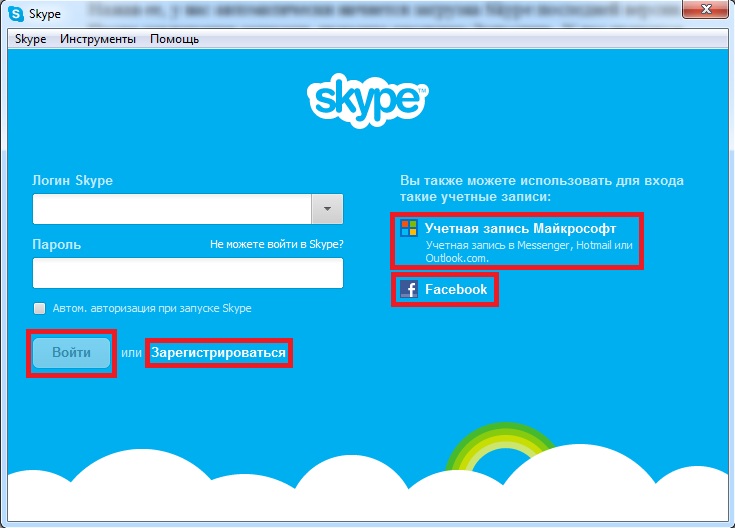 Если же у вас уже имеется логин в скайпе или вы уже когда-то пользовались данной программой, то просто введите свой логин и пароль и нажимайте Войти, и после этого, вы войдёте в систему под своим аккаунтом и сможете общаться с кем пожалаете. Если же программа Скайп (Skype) устанавливается вами впервые, то значит просто нажимаем Зарегистрироваться.