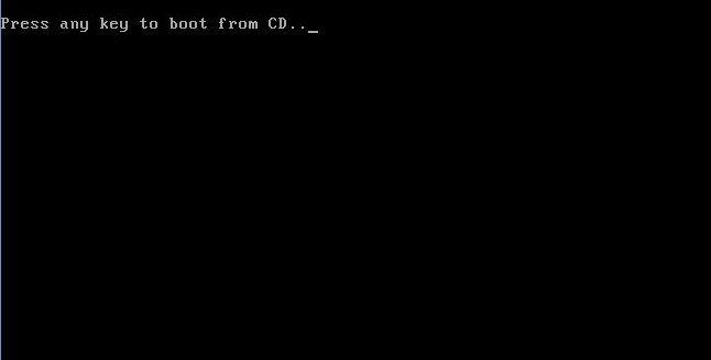 После этого компьютер перезагрузится. И если у вас в приводе имеется диск с виндовсом то должна начаться установка виндовс. Как только на экране вы увидите надпись Press any key to boot from CD… то сразу жмите любую клавишу (лучше энтер). Если вы этого не сделаете то через 10 сек компьютер вновь перезагрузится.