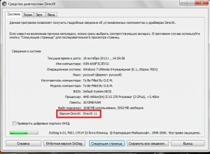 Теперь должно появится главное окно «Средство диагностики DirectX», в котором во вкладке Система будут указаны сведения об операционной системе, BIOS, процессоре, оперативной памяти, размере файла подкачки и наконец, текущей версии DirectX.