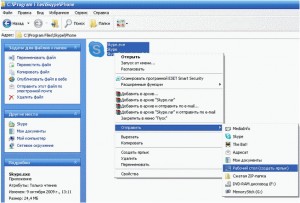 Итак, первым делом нам нужно зайти в папку, где у нас на компьютере установлена программа Skype. По умолчанию он находится по этому адресу: C:Program FilesSkypePhoneSkype.exe. Нажимаем правой кнопкой мышки на значке программы и выбираем в контекстном меню пункт Отправить>Рабочий стол (создать ярлык).