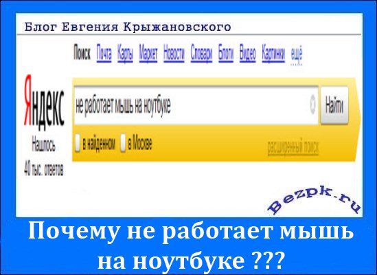 Здравствуйте, Уважаемые читатели блога BEZPK.RU. Сегодня хочу помочь вам разобраться в вопросе почему не работает мышь на ноутбуке. Чаще всего мышь на ноутбуке перестает работать без причины, например вчера работала, а сегодня перестала. Заметил что все чаще этот вопрос начинают задавать на форумах, поэтому хочу описать решение проблемы у себя на блоге.