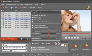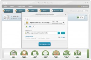 Русскоязычная программа Movavi Video Converter поддерживает большинство современных форматов, в том числе форматы почти всех мобильных устройств. Интерфейс программы интуитивно понятен, а функциональность ее позволяет не только осуществлять конвертацию, но и производить тонкую настройку параметров видео, улучшая тем самым качество картинки в конечном файле. Также Movavi Video Converter поддерживает функцию склейки нескольких видеофайлов в один и функцию автоматического создания фотогалерей из видеороликов. Полнофункциональная версия программы условно-бесплатна – она ограничена триальным периодом, длящимся 30 дней.
