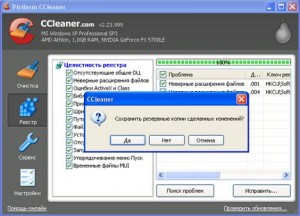 Однако стандартная утилита для очистки диска куда менее эффективна и информативна, чем аналогичные программы сторонних производителей. Поэтому было бы более целесообразно установить бесплатную программу, предназначенную для очистки дисков от системного мусора. Одной из таких программ является CCleaner. Данная утилита очень проста в освоении, имеет удобный интерфейс и вполне прилично справляется с поставленными задачами. Кроме того при помощи CCleaner можно также осуществлять удаление установленных программ и проводить чистку системного реестра. Последняя процедура также призвана улучшить производительность компьютера, однако ее не следует проводить слишком часто. Также для подстраховки стоит указывать в программе, что перед удалением следует сохранять резервные копии удаляемых ключей реестра.