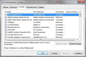 В Windows 7 вместе с запуском компьютера, помимо неиспользуемых программ, загружается еще и множество бесполезных служб. Отключение ненужных служб поможет высвободить некоторый объем оперативной памяти, что в итоге может дать прирост производительности операционной системы. Чтобы посмотреть список загружаемых автоматически служб необходимо так же, как и в случае с автозагрузкой, зайти в настройку системы, только в этот раз мы переходим на вкладку Службы
