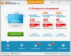 После установки на компьютер программа сразу же проводит сканирование системы, затем в главном окне Auslogics BoostSpeed появляется отчет о найденных проблемах и предложение провести более детальное сканирование. После проверки вы можете сразу же очистить систему и исправить обнаруженные неполадки.