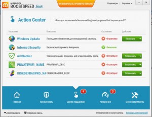 В разделе Центр поддержки можно управлять обновлениями операционной системы Windows, а также загрузить и установить на ПК дополнительные программы для оптимизации работы с компьютером.