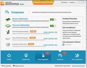 Раздел Ускорение содержит инструменты для динамической оптимизации работы центрального процессора, оперативной памяти и жесткого диска.