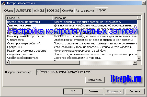 После этого у вас откроется окно конфигурации системы. Там нам нужно зайти во вкладку Сервис и выбрать настройку контроля учетных записей.