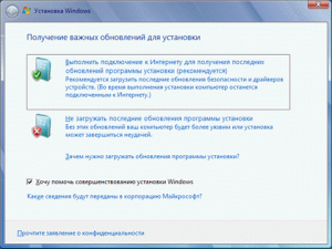 В процессе переустановки Windows 7 запросит разрешение на получение последних обновлений из интернета.