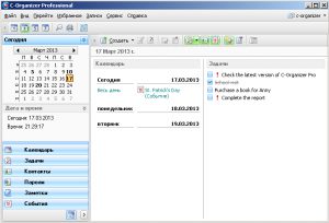 Программа C-Organizer может похвастаться функциональным и удобным интерфейсом, наличием не только планировщика задач, но и записной книги, менеджера паролей и других полезных инструментов. При создании новой задачи в программе можно установить приоритет задачи, настроить напоминание, прикрепить файл и так далее. Опция создания подзадач и подзаметок в C-Organizer отсутствует, но есть возможность объединять задачи в глобальные группы и списки. Среди особенно полезных и интересных функций утилиты стоит выделить поддержку горячих клавиш, функцию оповещения при определенных действиях, а также функцию стикеров. Последняя позволяет отправлять записи на рабочий стол в виде виртуальных стикеров (клейких листиков для записей). А благодаря возможности оповещения в связи с действиями вы можете настроить текстовые и/или звуковые оповещения при запуске определенных приложений. C-Organizer поддерживает защиту данных при помощи пароля и шифрования.
