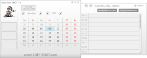 Diary from Enot – программа из категории «без заморочек», в ней имеется в наличии только календарь, встречи и напоминания. Календарь в Diary from Enot синхронизируется с онлайн-сервисом Google Calendar. Минималистический интерфейс программы визуально красив и интуитивно понятен, а процесс добавления новых напоминаний проходит максимально упрощенно, что делает программу очень удобной в повседневном использовании. Конечно, в Diary from Enot нет многих полезных функций, которые присутствуют во многих других программах-органайзерах, но для пользователей, которым нужна банальная «напоминалка» с приятным интерфейсом, Diary from Enot будет настоящей находкой. Также не последнюю роль играет то, что программа абсолютно бесплатна, скачать ее можно с официального сайта разработчиков, который находится по адресу: http://soft-enot.com.