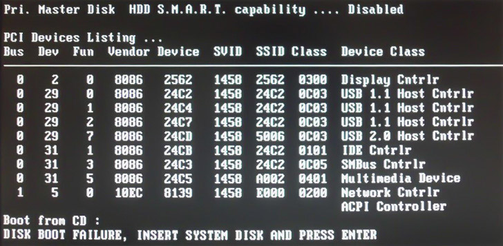 Ошибка Disk boot failure