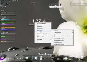Виджеты можно передвигать по рабочему столу при помощи мышки. Нажав правой кнопкой мышки по определенному виджету, вы сможете закрепить его на рабочем столе, сделать некликабельным, настроить прозрачность или же просто закрыть.