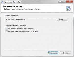 Во время установки программы не забудьте отметить галочкой, должен ли загружаться Rainmeter вместе с Windows, и нужно ли устанавливать 64-разрядную версию.