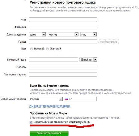 Создатели сервиса «Мой Мир» предпочли не осуществлять регистрацию отдельно в этой социальной сети. Для того чтобы стать ее непосредственным участником, вам необходимо всего навсего зарегистрировать свой почтовый аккаунт на сервисе mail.ru.Также при регистрировании не постарайтесь не забудьть поставить галочку в графе Создать страничку в мой мир.