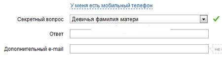 В случае если же у вас нет мобильного телефона под рукой,или же по каким то другим причинам у вас нет возможности им воспользоваться,можно также совершить регистрацию и без помощи сотового телефона. Но для сего требуется введения секретного вопроса(этот вопрос может быть стандартным Девичья фамилия матери,который предложит вам сервис,или же сами можете его придумать,и указать в специальном для этого поле) и естественно ответа на него.