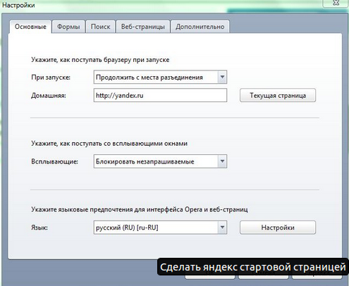 Как можно сделать Яндекс стартовой страничкой Оpera