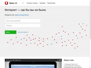 К сожалению в последней версии браузера Opera не предусмотрена возможность делать закладки, а данные экспресс-панели нельзя ни импортировать ни сохранять в файл. Однако решить данную проблему можно при помощи сервиса Opera Link. Opera Link – это сервис, который позволяет осуществлять синхронизацию данных между устройствами, на которых установлен браузер Opera. Чтобы включить синхронизацию Opera Link, нужно перейти по адресу: link.opera.com и зарегистрироваться в системе.