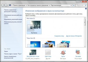 После этого нажимаем на свободном месте рабочего стола правой кнопкой мышки и выбираем пункт Персонализация. Затем переходим в раздел Изменение значков рабочего стола.