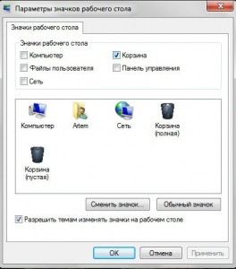 В открывшемся окне убираем галочку с пункта Корзина, после чего нажимаем Применить и Ок.