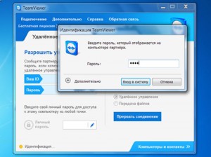 Теперь устанавливаем программу Team Viewer на компьютер, с которого мы будем осуществлять управление. Затем запускаем и в правой части окна вводим ID компьютера, к которому устанавливаем удаленный доступ. Потом в появившемся окне вводим пароль и нажимаем Вход в систему.
